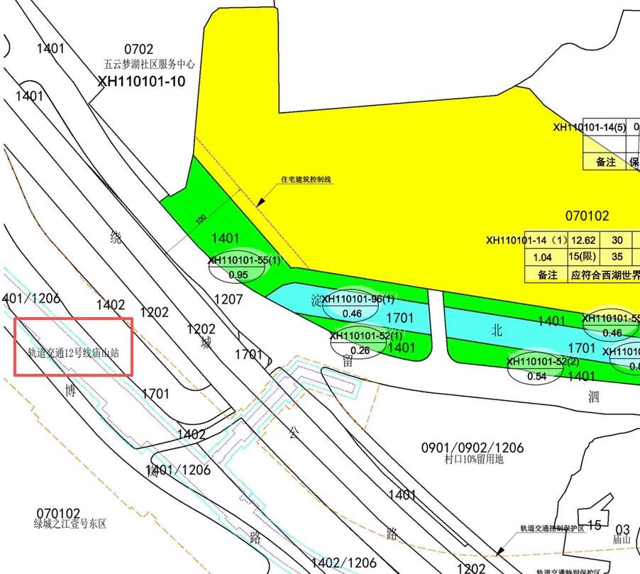 具体来看,将XH110101-14地块拆分为5宗子地块,包括2宗纯宅地、1宗公园用地、1宗远期预留市政设施用地和1宗慢行系统用地。其中,公园用地占地1.33公顷,被宅地包围,可以看作未来住宅区内的“私家森林”。