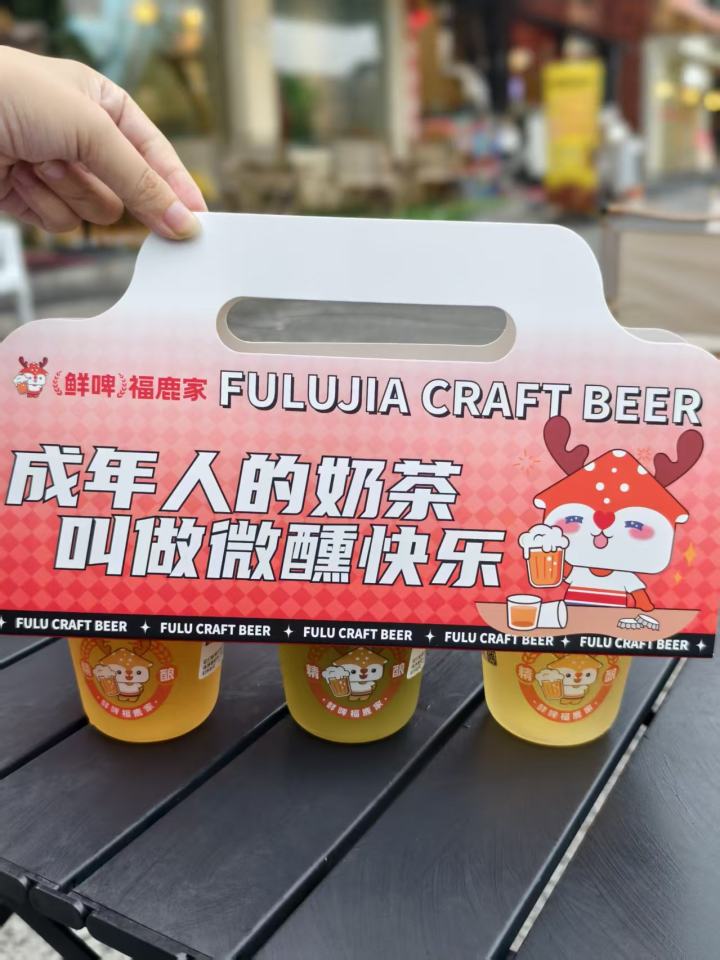 有位年轻女生刚好在店内消费,她告诉记者,自己点是团购平台上12.9元3杯的套餐,“几块钱一杯的精酿,性价比很高了,而且味道也不错。”