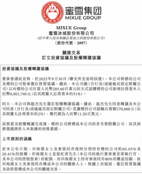如果是爱喝啤酒的网友,对于鲜啤福鹿家大概并不陌生,这个品牌成立于2021年,主打鲜啤、果啤等品类,价格并不算贵,在全国多个省市都有自己的门店,数量超过1000家,而10月1日,蜜雪集团在港交所发布的公告显示,蜜雪冰城以2.856亿元增资认购鲜啤福鹿家新增注册资本,占扩大后注册资本的51%;再以1120万元从独立第三方处受让2%股权,进一步实现绝对控股。