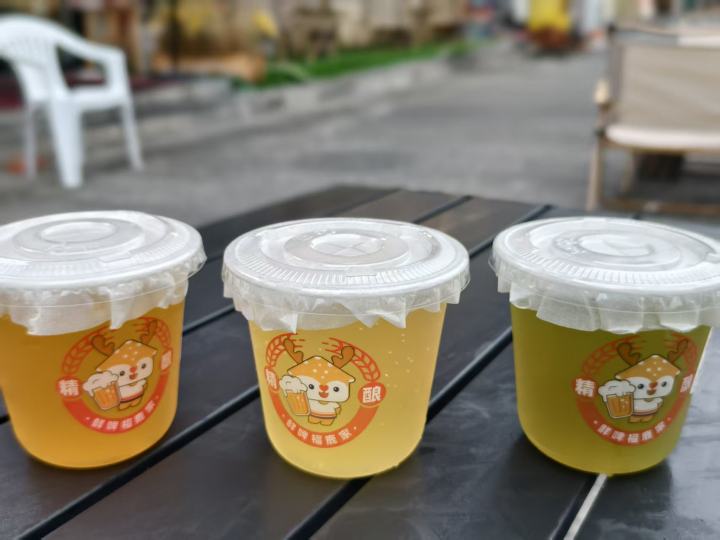 如果在团购平台上购买,5.9元就能买到一斤德式小麦啤酒,12.9元可以买到3杯爆款口味的果啤,均价4.3元一杯,据店主介绍,店里目前卖得最火的就是德式小麦、菠萝啤和微醺小奶啤。