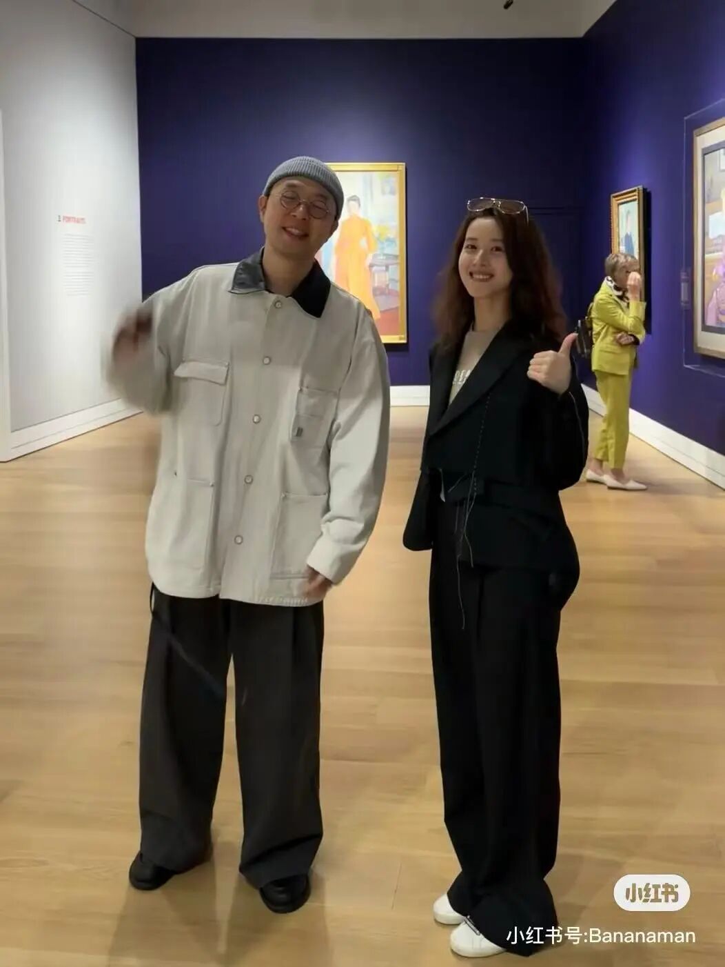 杜海涛晒与章泽天伦敦看展合照,笑容灿烂!奶茶妹妹蓬松卷发超松弛