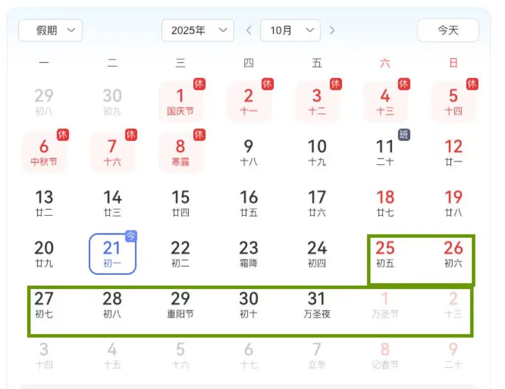 查询发现,咸丰此次5天秋假时间与前后两个周末假期衔接,可以连休9天(10月25日至11月2日),不用调休。