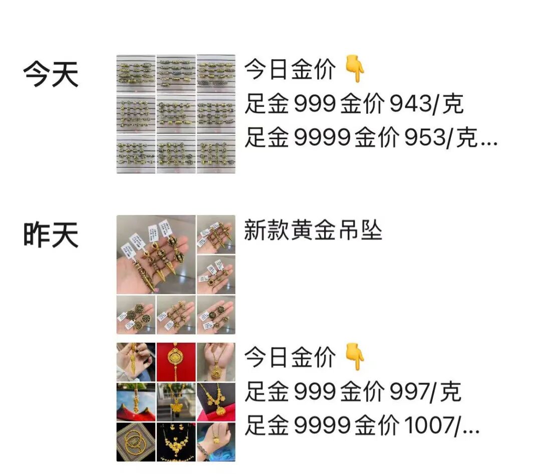 杭州白马珠宝市场商家每日在朋友圈发布最新挂牌价