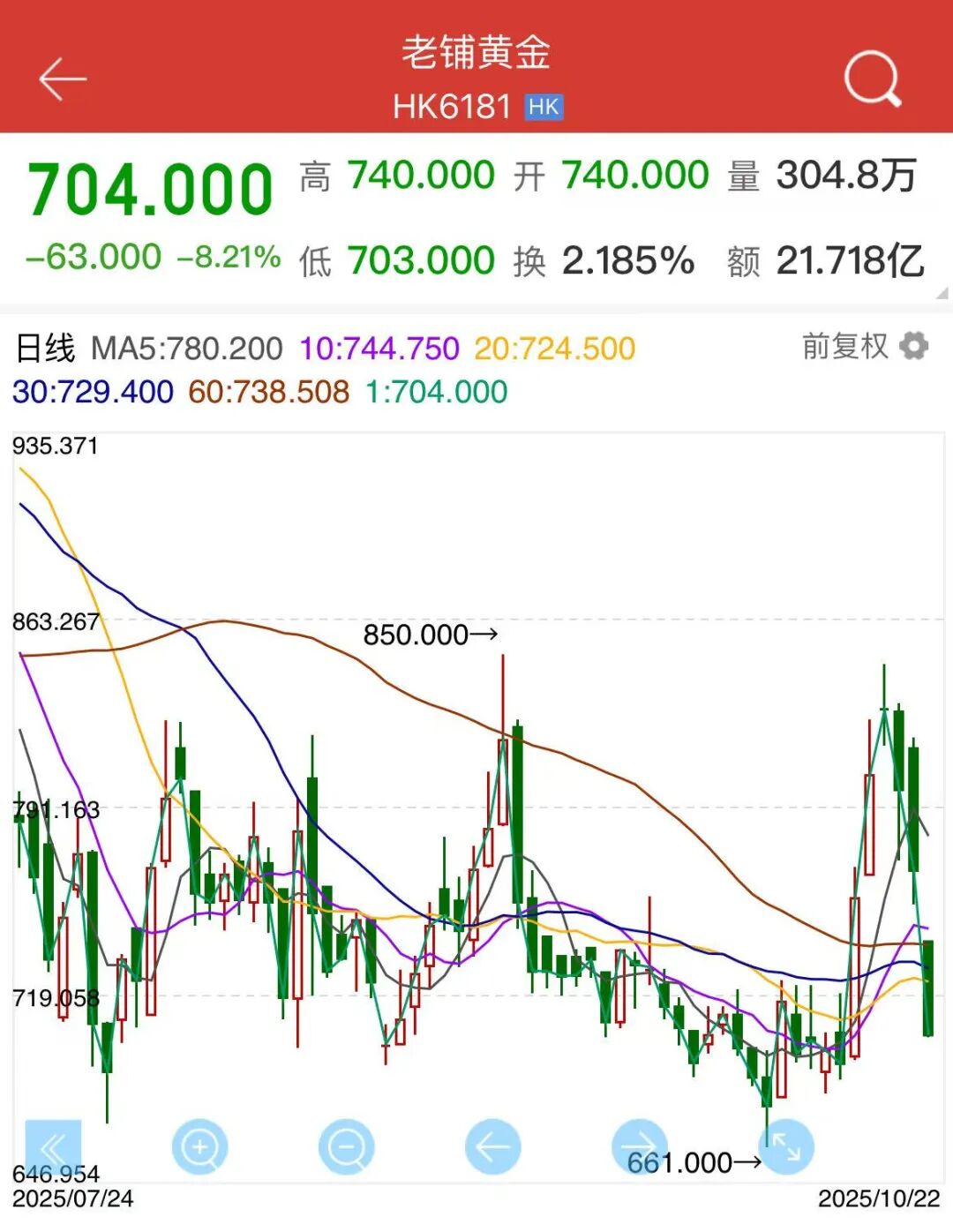 金价大跌!老铺黄金股价跌超8%!足金克价一天暴跌60元,网友“崩”了!