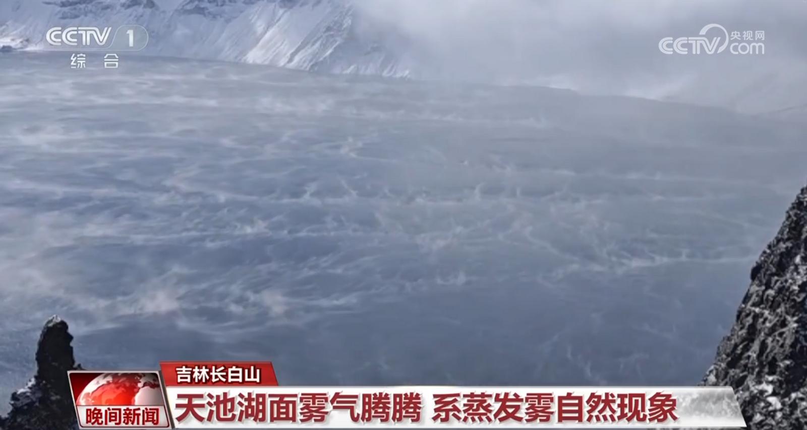 吉林长白山:天池湖面雾气腾腾 系蒸发雾自然现象