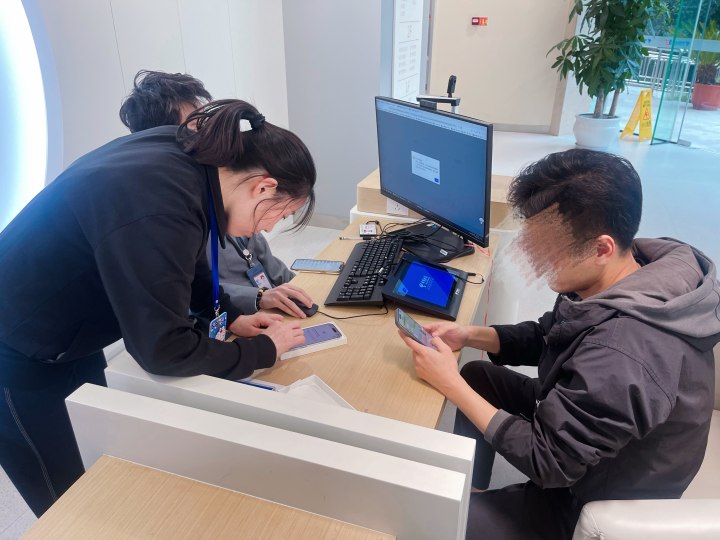 下午,记者去了位于武林广场的杭州电信营业厅,恰好遇到前来办理业务的张先生。张先生告诉记者,他半个月前便在线上进行了预约,今天是特地到店现场购机,办理eSIM转卡,将原来有实体SIM卡的号码迁移至新机。