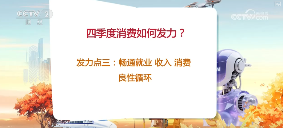 央视网消息:2025年前三季度,消费持续发挥经济增长主引擎的作用,对于第四季度消费增长还有哪些发力点专家进行了解读。