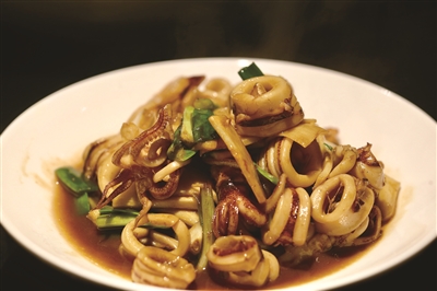 根据自己喜欢的家常口味来定。红烧小管的酱汁,颜色和口味都比家烧要重一些,酱香中多了浅浅的酸和淡淡的甜。安哥说现在流行白灼小管,那个吃多了有点无趣,这里是吃夜老酒的,多几分风味更好。