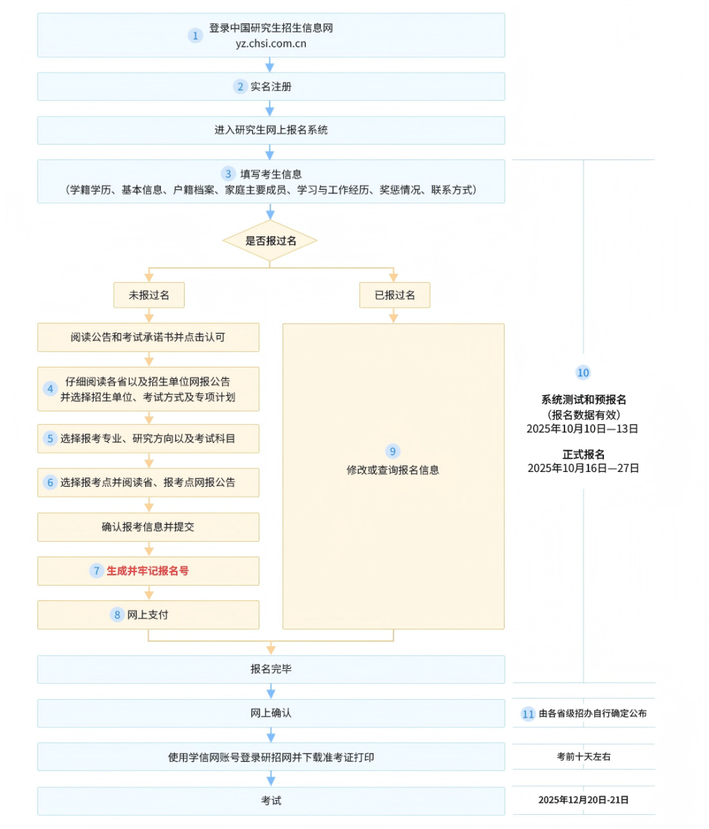 2026年全国硕士研究生招生统考网上报名将于2025年10月27日22:00结束!尚未报名、缴费,以及信息需要检查修改的考生,请抓紧时间上网操作。
