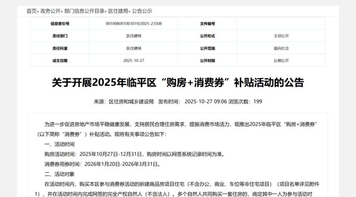 为进一步促进房地产市场平稳健康发展,支持居民合理住房需求,提振消费市场活力,现推出2025年临平区“购房+消费券”(以下简称“消费券”)补贴活动。现将有关事项公告如下: