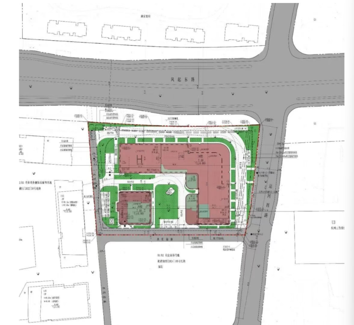 该项目地址位于杭州市上城区(景芳三堡单元 JG1203-28地块),东至运河西路,南至景芳三堡单元JG1203-29地块,西至景芳三堡单元JG1203-27地块,北至凤起东路,用地面积13921平方米。