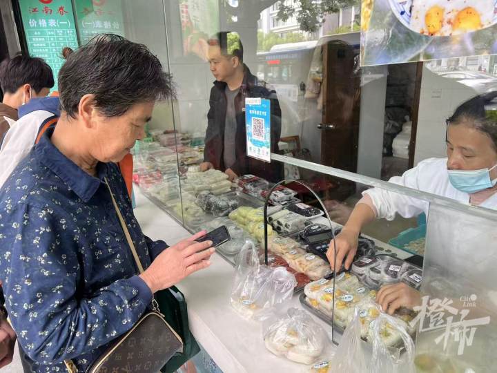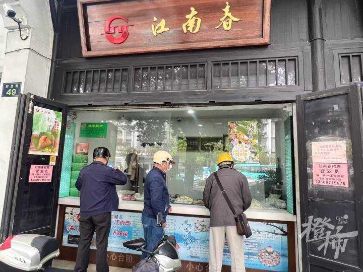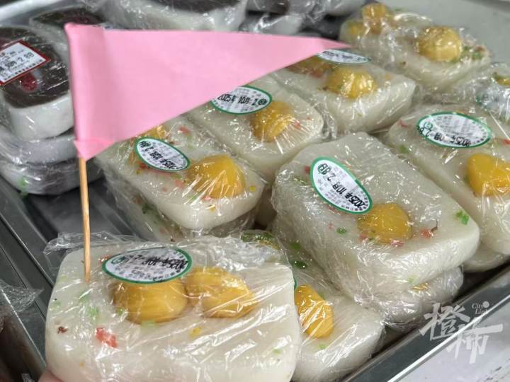 今天上午十点多,记者来到江南春解放路门店,来买重阳糕的人已经有不少了。