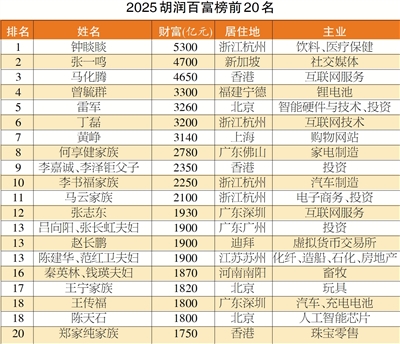 钟睒睒四度登顶 浙商霸榜2025胡润百富榜 谁是下一个首富候选人?