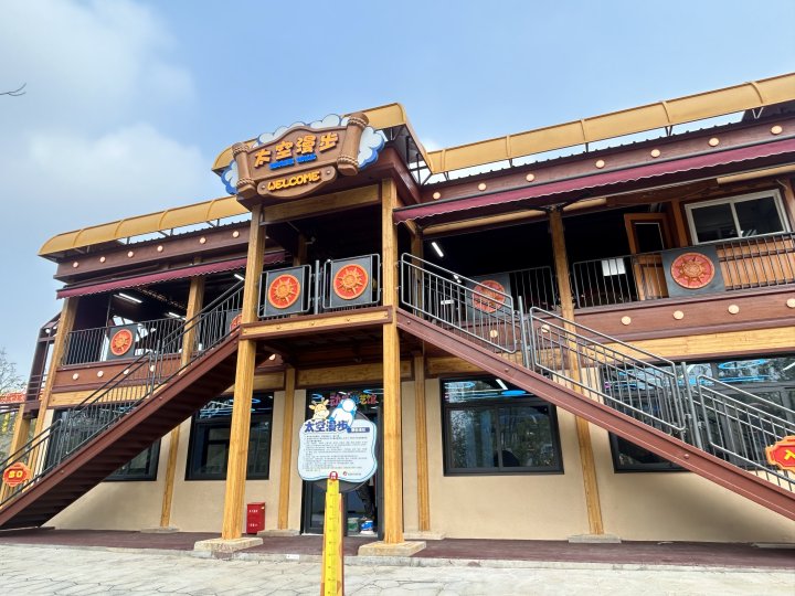 “太空漫步”的轨道,在游乐园的中心区域绕了一个大圈,最高处有7米,坐在上面,自己就能操控方向盘,来个360度旋转,俯瞰整个园区,还能看到大半个杭钢公园,视野无敌。