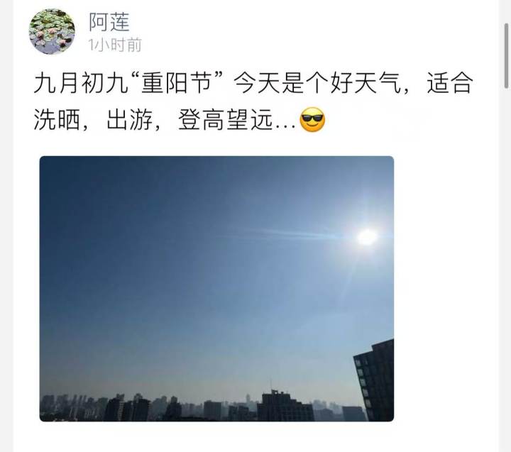 随着阳光的登场,以及白天气温的小幅回升,今天总算是收获了一个“秋高气爽”的好天气,适宜出行、登高、洗洗晒晒。