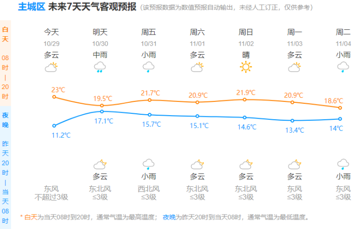 预计明天(30日)上午杭州上空就会有厚厚的云层,太阳就很难见到了,明天下午到夜里还会有小到中雨。明天杭州气温15~20℃,降雨之后,加上吹东北风,人体感觉有一点点偏凉。