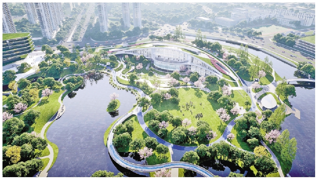 杭州青少年活动中心城西分中心(北侧鸟瞰)效果图。杭州云城建设管理指挥部供图
