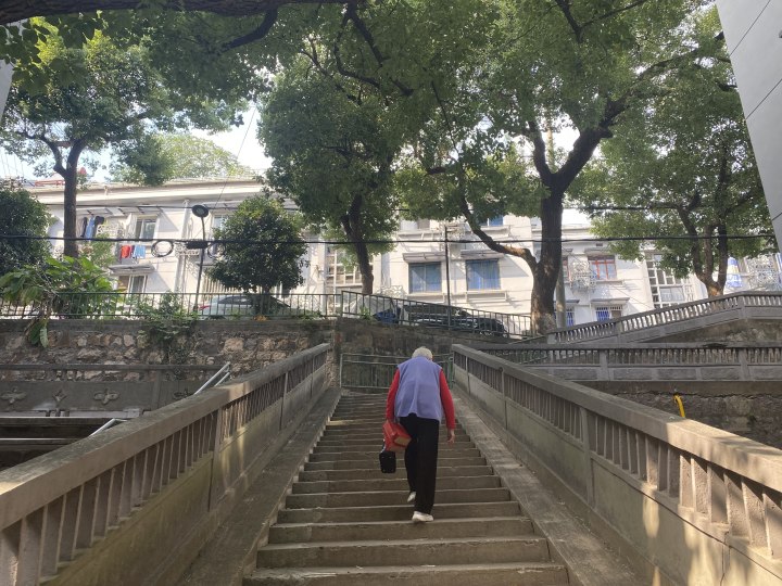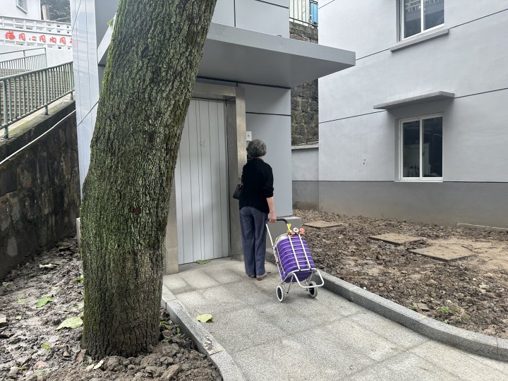 28日上午,记者在杭齿宿舍区看到,沿山而建的房子门前陡坡上正在修建台阶,考虑到居民特别是老人出行,小区还加装了公区电梯,可以从山下直接乘电梯到山上房子的平台上。