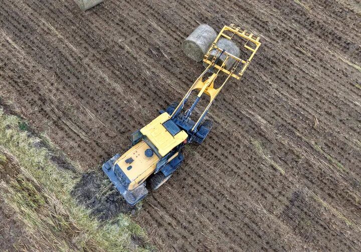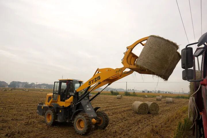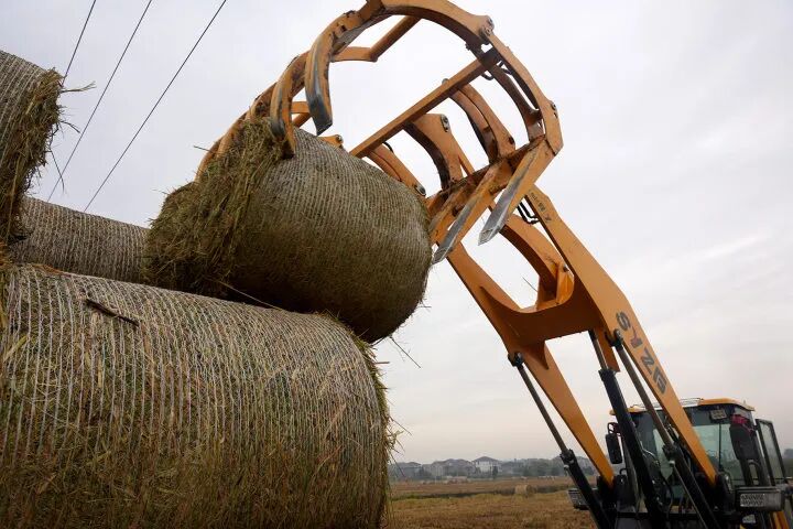 紧接着,夹草机伸出机械臂,稳稳地将草卷夹起,放上等候的卡车。