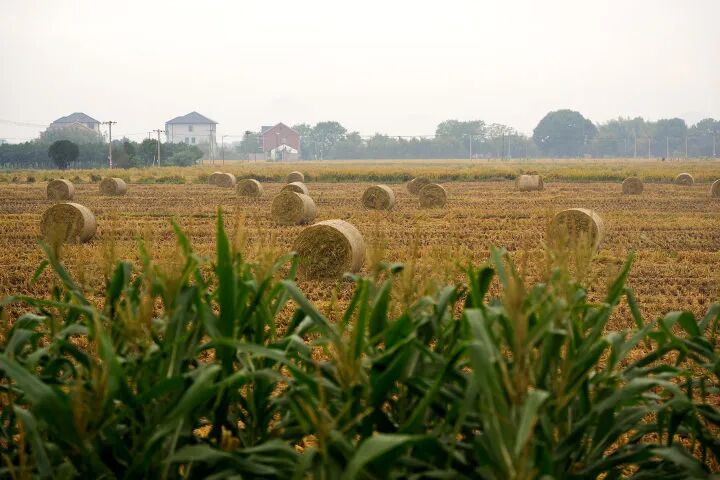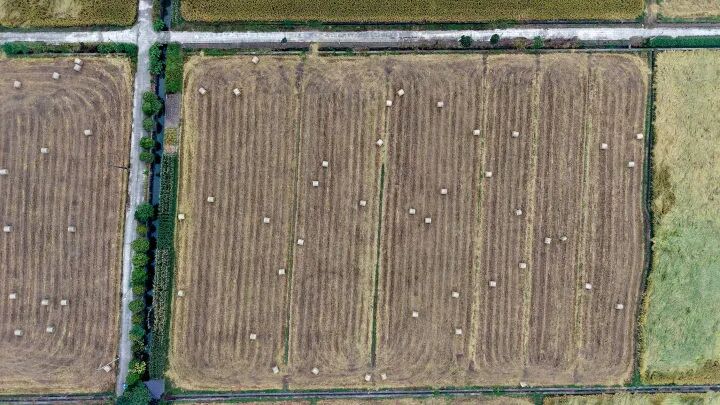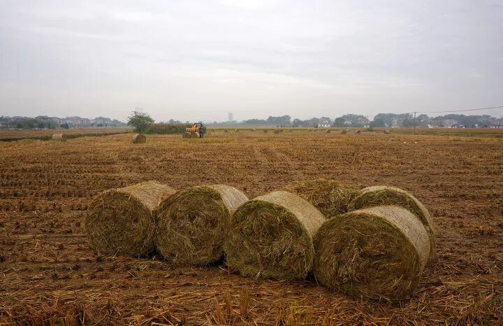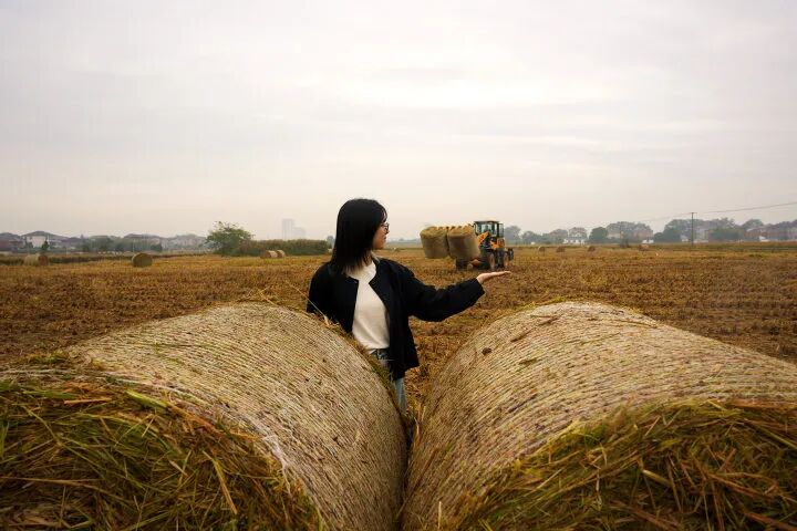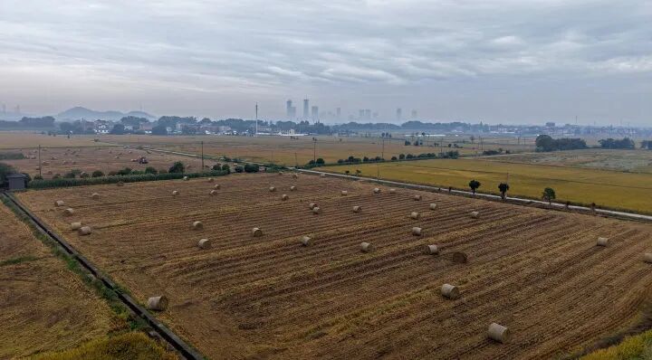 在萧山区,去年秋天首次使用了秸秆搂草机和秸秆打捆机这组“黄金搭档”,约一周时间,就完成了世纪田园约3500亩晚稻秸秆回收。一捆捆“瑞士卷”静静地“躺”在城市中心的“稻田CBD”上,成为一道“丰”景,吸引了大量市民拍照。