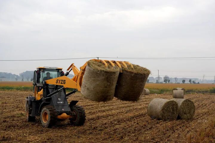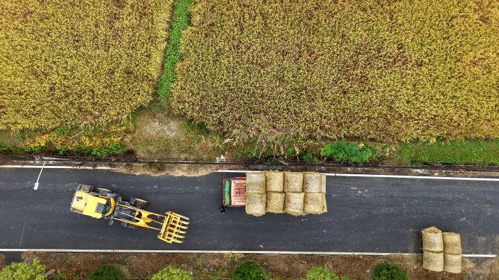 不一会儿,大卡车便载着满满一车“稻草卷”驶向远处。