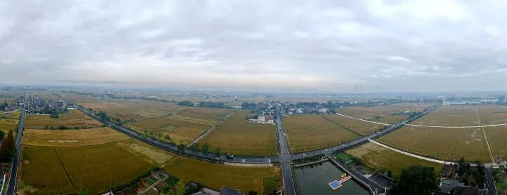 窄窄的乡间公路两侧,是笔直挺立的水杉,枝叶在微风中轻轻摇曳。视野放远,是一片金黄的稻田。雨后的空气清新湿润,混着泥土与稻谷的香气。