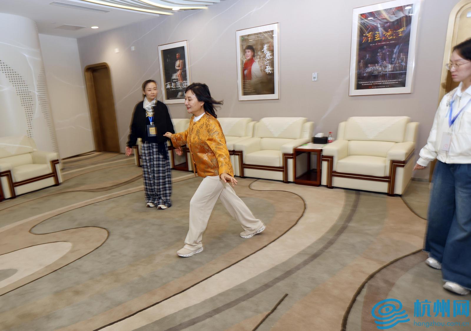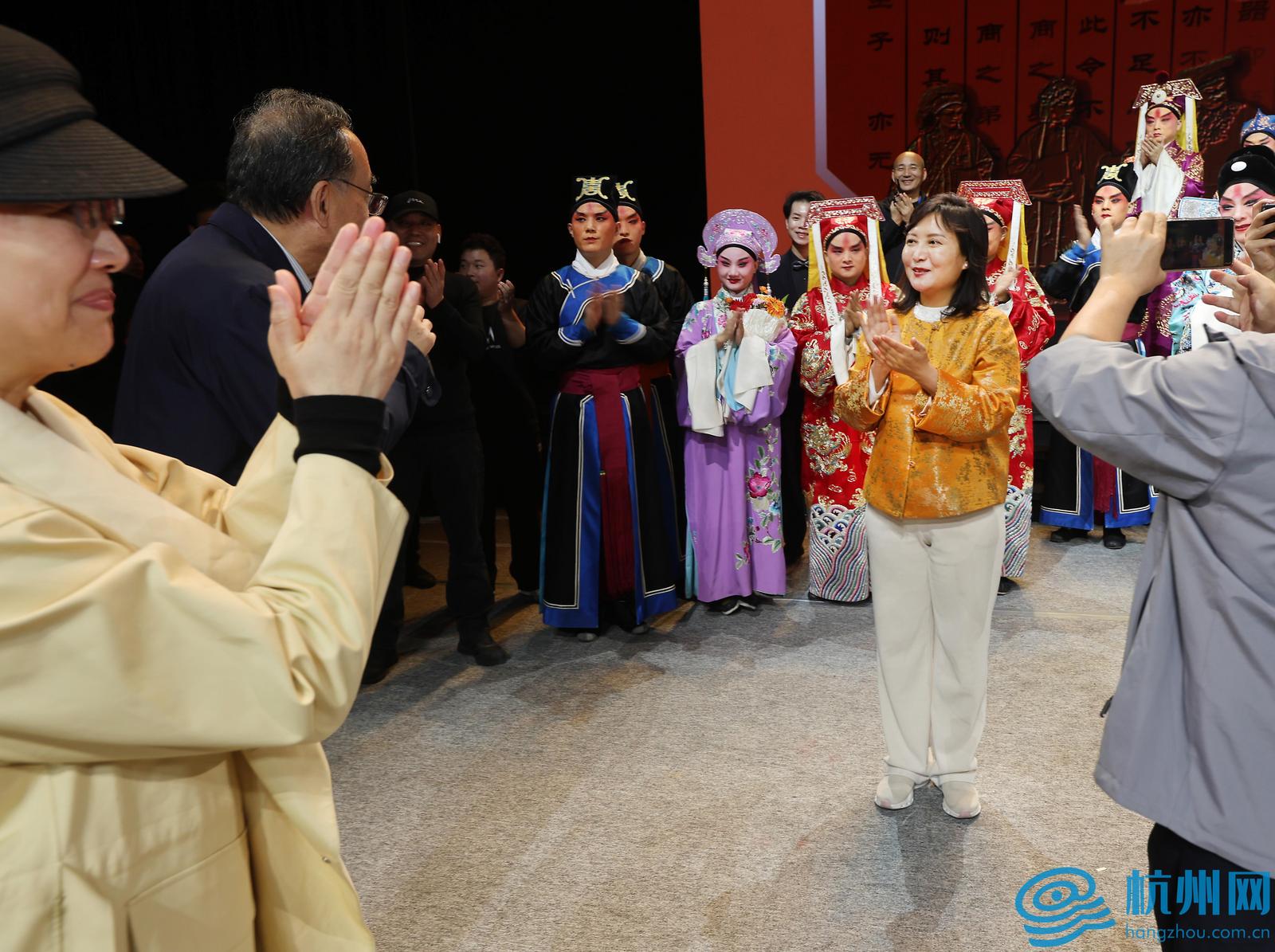 茅威涛(左一)对惠敏莉及其同事的表演高度赞赏。