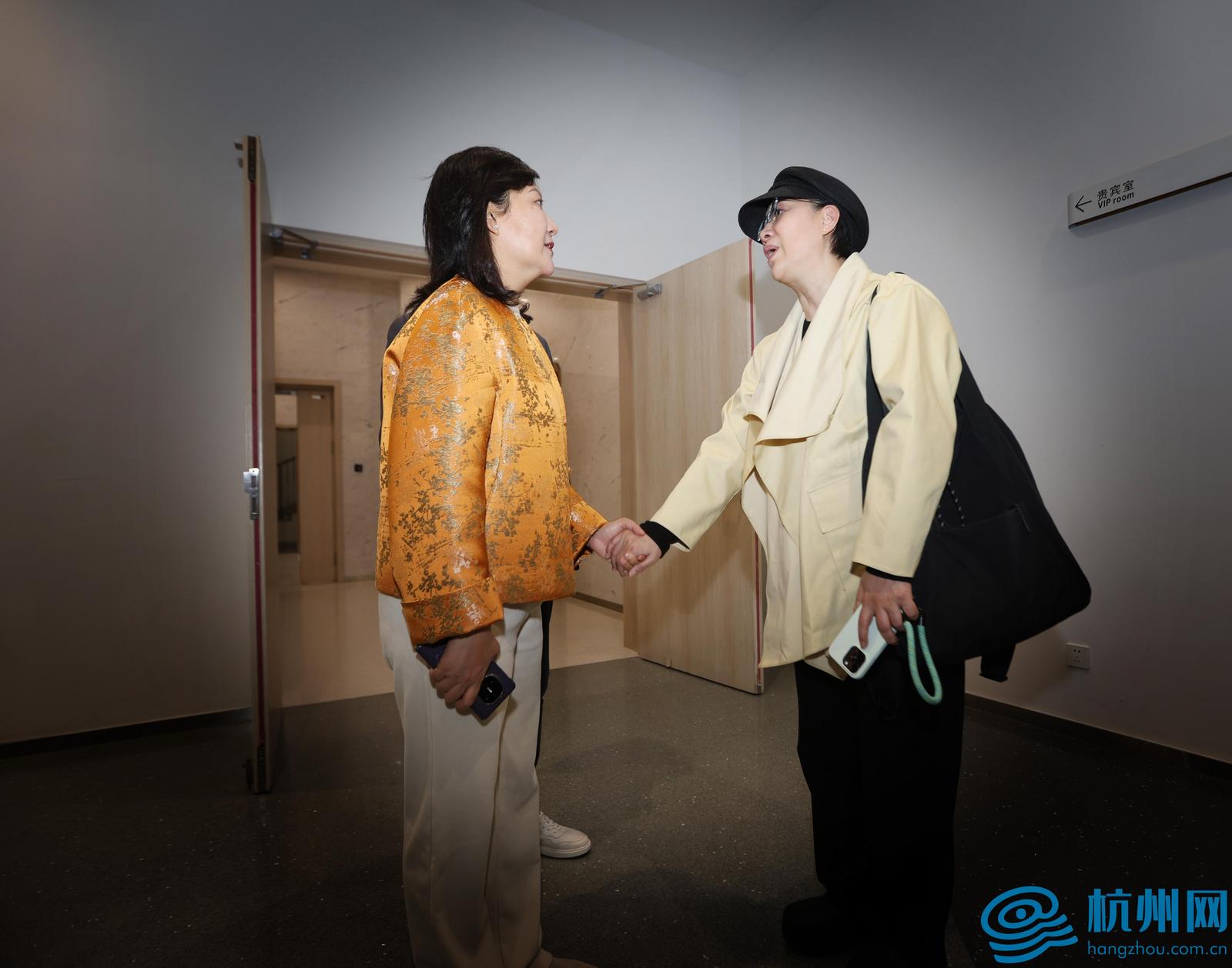 28日晚后台,惠敏莉与前来看演出的茅威涛共话中国戏剧