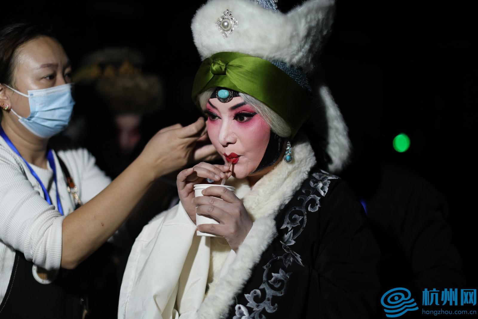 《三滴血》承载了百年梨园荣光,《昭君行》则呈现艺术创新活力,两剧共同点燃江南观众的观剧热情。两天中,记者用镜头记录了“王昭君”及其同事台上台下,台前幕后的忙碌瞬间。