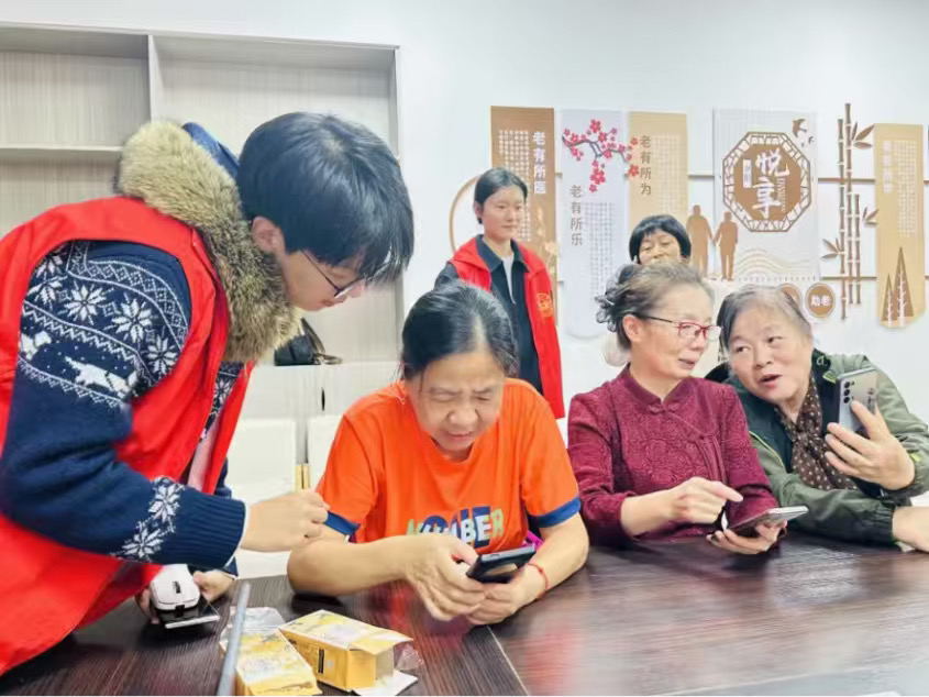此次活动中,志愿者还发挥专业优势,设置了“智能手机答疑角”,手把手教老人使用智能手机:调微信音量、剪辑短视频、操作豆包、夸克等AI软件。“原来这个‘豆包’这么好玩的!”一名老人学会了使用技巧后开心地拍手,脸上洋溢着孩子般的笑容。站在他身旁的志愿者说,他们想通过活动告诉老人们,科技不再是冰冷的工具,而是成为连接彼此、传递温暖的桥梁。