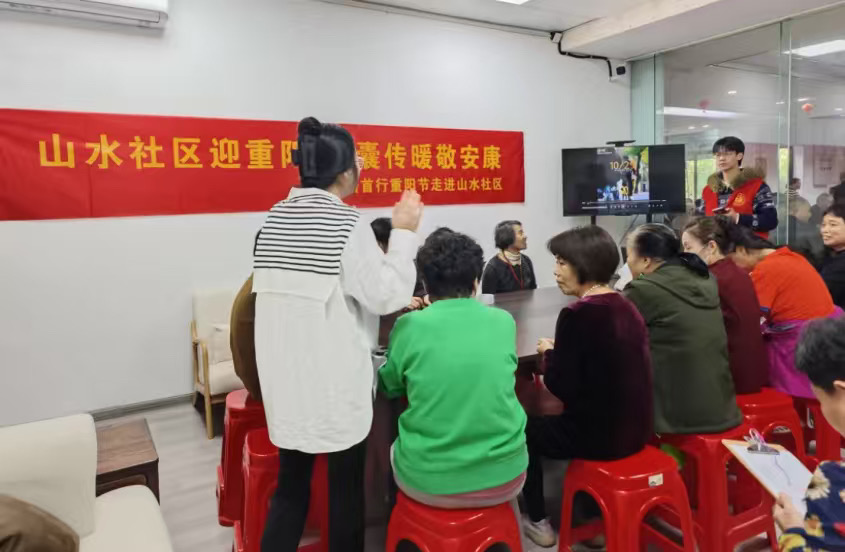 随后,志愿者以轻松有趣的方式,为长者们讲述了重阳节的“前世今生”。从“佩茱萸、登高、品重阳糕”的古老风俗,到如今被赋予“敬老爱老”的现代意义,一段段故事娓娓道来,老人们听得津津有味,不时点头微笑,仿佛重回青春岁月。