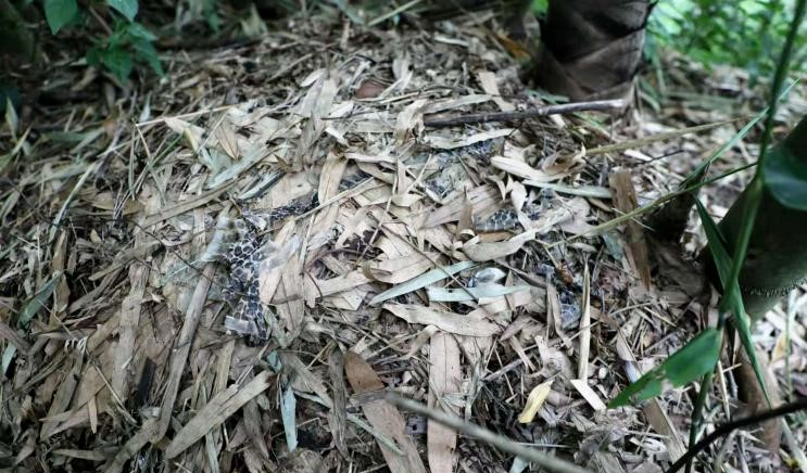 △眼镜王蛇巢及留下的蛇蜕。图源:云南高黎贡山保护区保山管护局