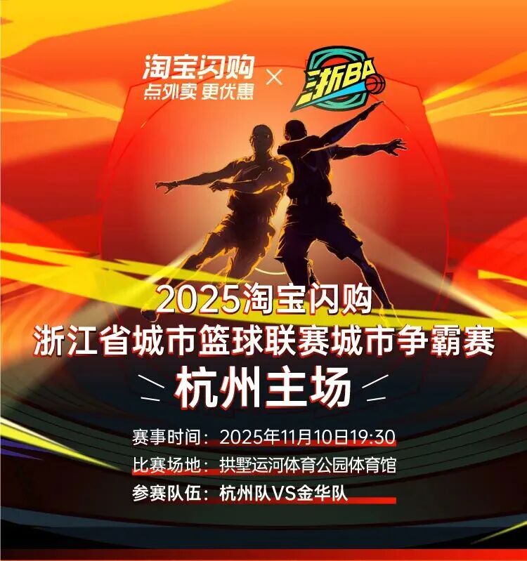 11月10日,浙BA城市争霸赛,杭州队将在拱墅运河体育公园体育馆主场迎战金华队!本次赛事门票即将开抢,共分两轮开售,一起来看↓↓