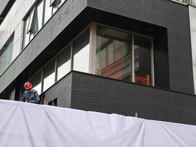 记者也注意到,施工人员正在拆除一楼的红色瓷砖,里面堆着大量水泥和砖块,似乎内部会进行较大的改动。同时,还有一位工人正在拆除外立面的深色方砖。