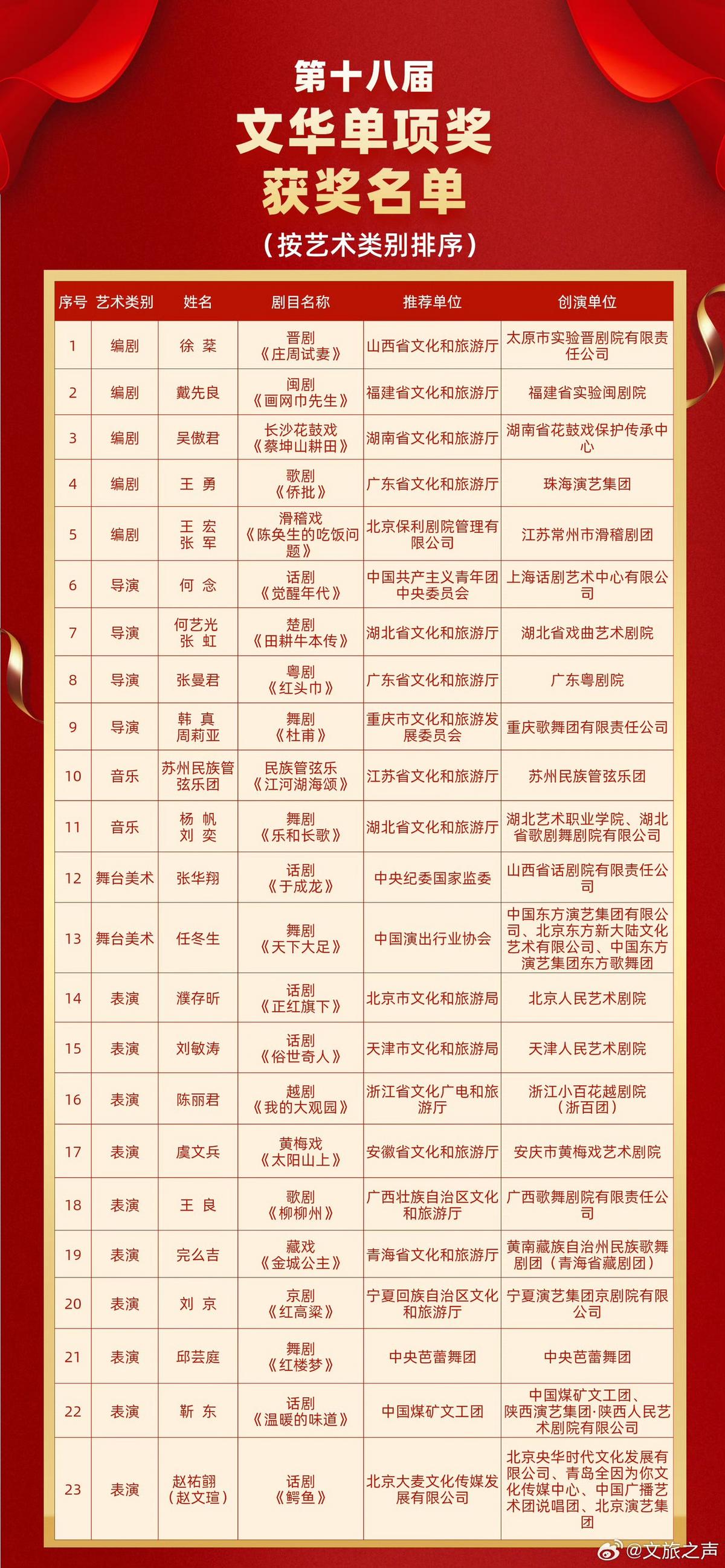 其中,节目奖为第十八届文华奖首次增设,主要针对时长不超过40分钟的小戏小品、歌曲舞蹈等节目。