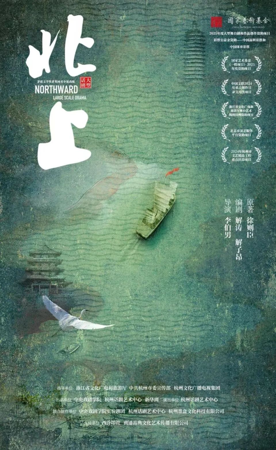 该作品入选国家艺术基金(一般项目)2025年度资助项目、中国文联2024年重点创作目录支持类项目、2024年度浙江省舞台艺术重大主题创作揭榜挂帅项目、2024年北京市演艺服务平台资助项目、2024年杭州市文艺精品工程扶持项目等。2024年9月首演至今,《北上》已在大运河流域多个城市上演,并成为2025中国大运河文化带京杭对话、第十九届中国戏剧节的开幕大戏,引发了业界讨论和媒体关注。