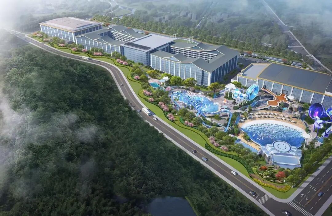 该项目总用地面积约145亩,规划建设约1200间客房的平行世界酒店,并配套超过1.6万平方米的国际会议中心,配备多个无柱宴会厅,未来将承接大型国际会议、行业峰会与高端庆典。约3万平方米的室内外水乐园将实现四季恒温运营,致力打造全季候、全年龄段的水上娱乐目的地。