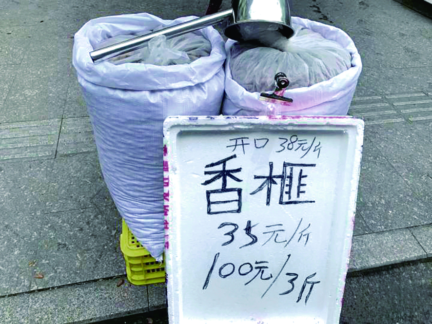 昨日,杭州刀茅巷一家炒货店门前,王顺根师傅在泡沫板上郑重地写着:香榧100元/3斤,开口香榧38元/斤。一位路过阿姨说,“去年记得卖43元一斤,今年新货上来嘎便宜呀,是不是掺了陈货?”