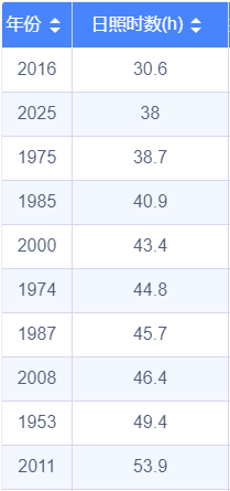 这段时间里,总日照时数仅38小时,比常年的91.1小时偏少近六成。日照之少在1953年以来位居历史第二,仅次于2016年的30.6小时。