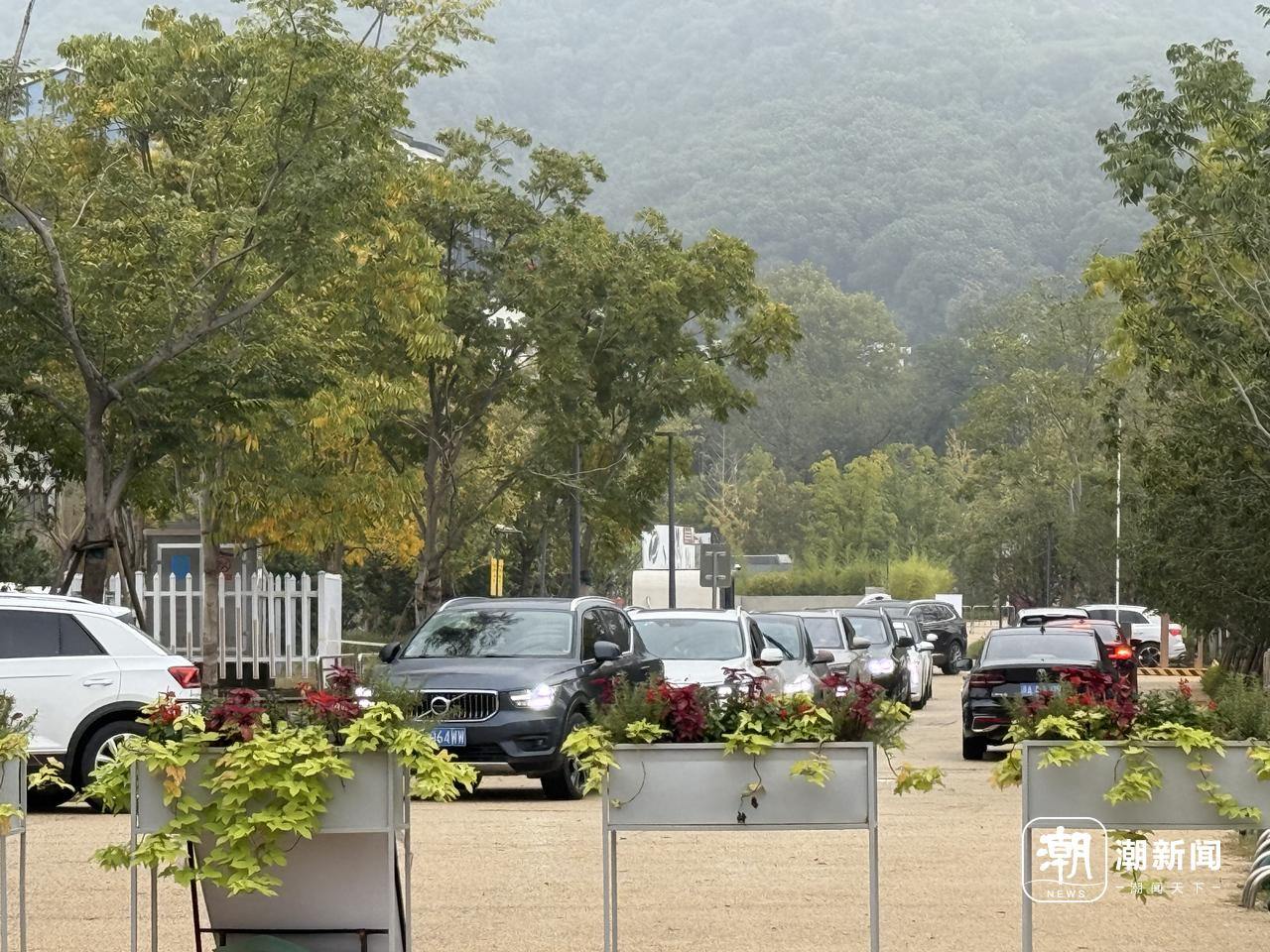 杭钢公园入口处车辆排队进入停车场。记者 戴佳轶 摄