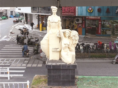 清泰立交桥清江路一侧,同样矗立着两个约4米高的双人雕塑。