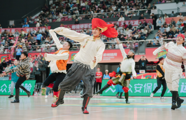 中场,来自青海海西州的演员们为浙江人民带来精彩的舞蹈演出,并拉出横幅感谢浙江人民十五年的对口支援,收获全场的掌声。