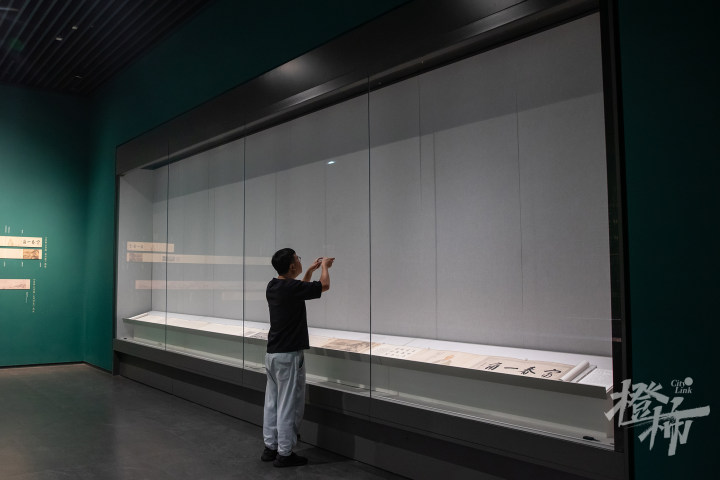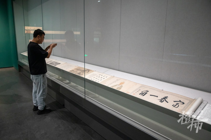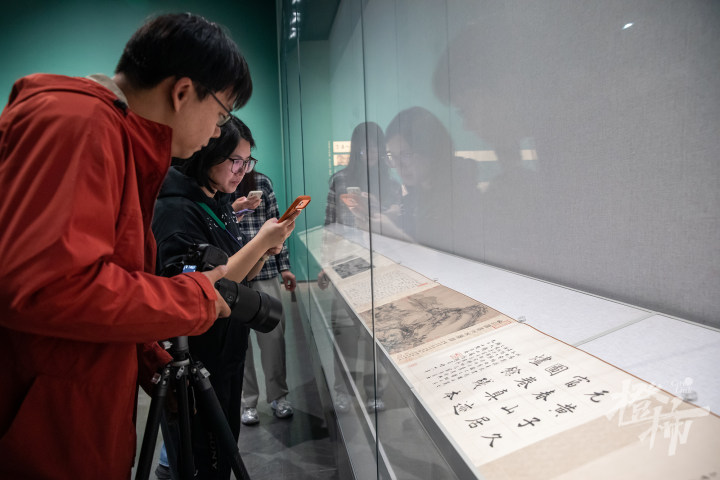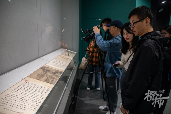 11月10日,媒体记者在浙江省博物馆之江馆区参观拍摄《富春山居图·剩山图》。