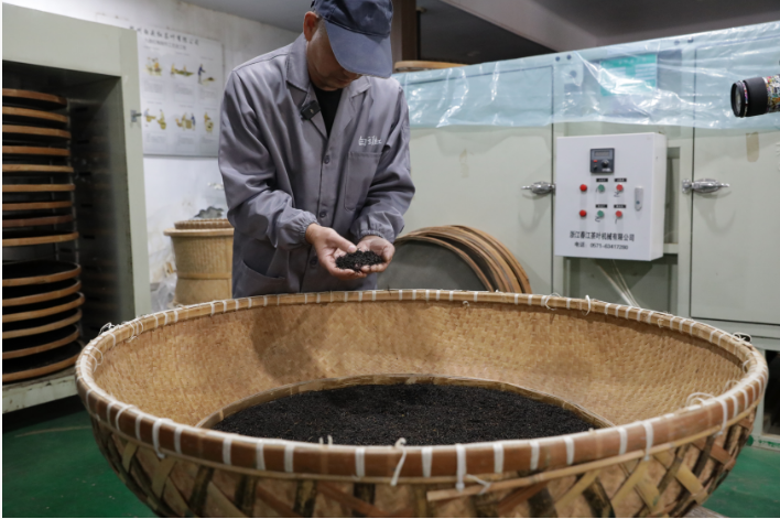 在周富村社井组,茶农缈锋琴正在为新鲜出炉的九曲红梅茶装袋打包。这场雨过后,桂花会不会开第三波?她还在期待着。