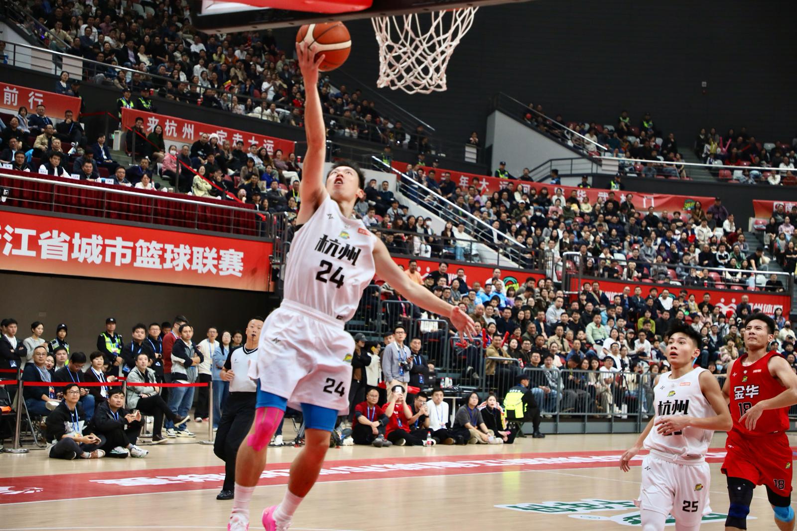11月10日晚,拱墅运河体育公园体育馆内气氛热烈非凡,一场备受瞩目的篮球对决在此上演,杭州队坐镇主场迎战金华队,最终以79比69的比分成功战胜对手,再次收获胜利,现场观众的热情欢呼声震耳欲聋,加油声此起彼伏。