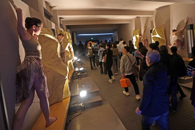 《行舟》以“文明传承、家园记忆、生命史诗”为主线,演出形式打破传统舞台边界,舞者们以身体为舟、以动作为楫,将肢体语言融入湘湖的自然景观与历史文脉,而观众则随着表演的推进,沉浸式游走在跨湖桥遗址博物馆、湘湖湖面、廊桥、鸟岛等不同场景,在移步换景中感受环境舞蹈的独特艺术魅力,亲历一场跨越八千年的艺术对话。