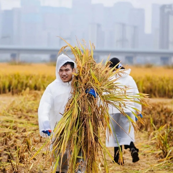 According to Xu Jinsong, head of the Rice Field CBD project, the farmland was first cultivated in 2021 and has since become a local sensation. Every year, the area produces wheat, rapeseed, flax, and rice, with grain sent directly to national storage. This autumn, 3,708muof rice and sorghum are being harvested, yielding over 600 kilograms permu.