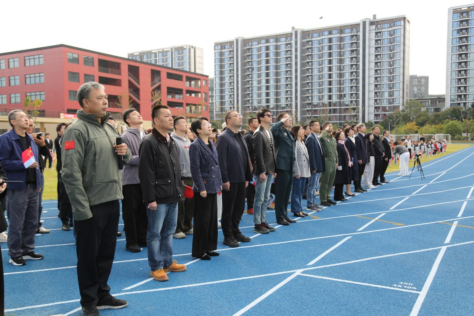 当日上午,学校国旗广场庄严肃穆,彩旗迎风招展。东部战区空军航空兵某旅特级飞行员周玉宝大校,杭州市委宣传部、上城区退役军人事务局、上城区教育局、笕桥街道相关领导,杭州市交通职业高级中学师生代表、笕和幼儿园师生代表,共建单位负责人及家长代表齐聚现场,与全校师生共同见证这一特殊时刻。