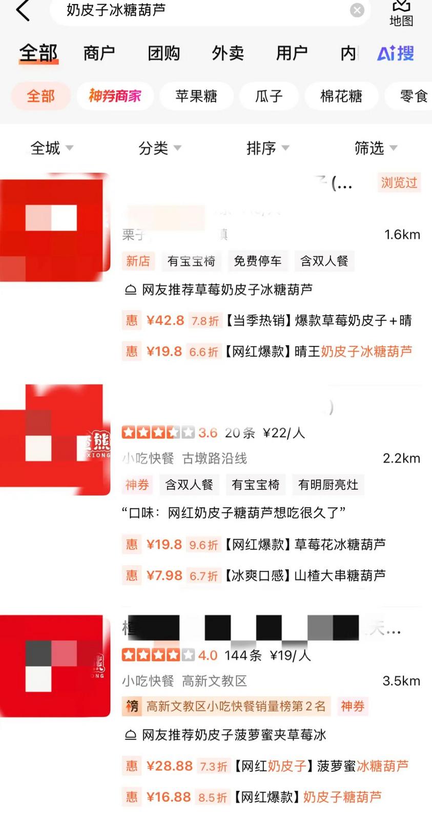 销量暴增之后,杭州多家小吃店或者甜品店火速上架各种口味的奶皮子糖葫芦。刚刚,记者在大众点评APP上搜索“奶皮子糖葫芦”,周边涌现数家出售该产品的商家,在产品评论区可以发现,这些奶皮子糖葫芦都是最近几天新上线售卖的。