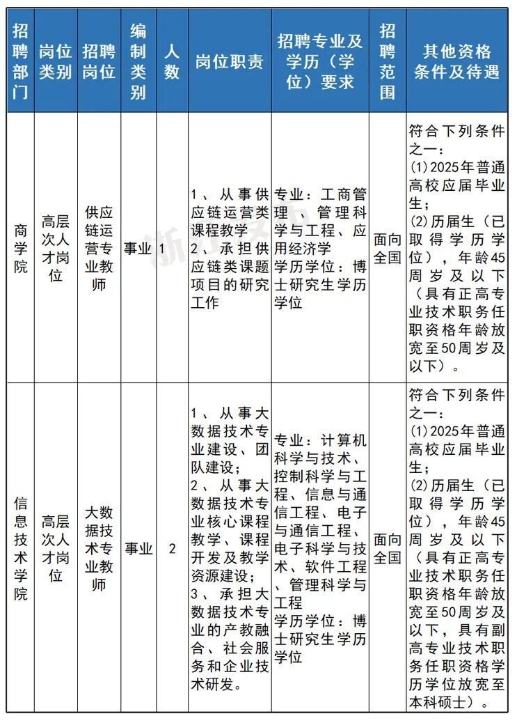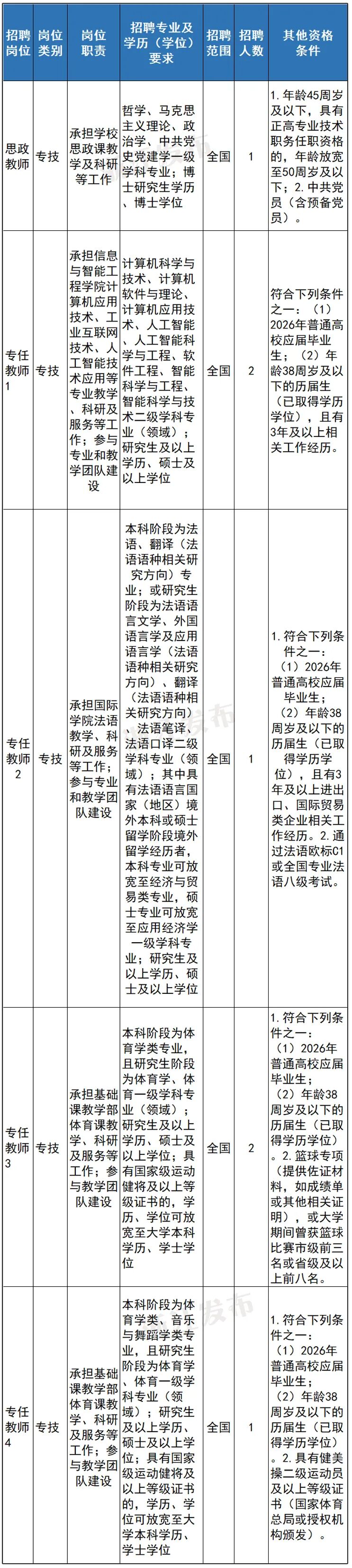报名时间:高层次人才岗位公告发布之日起至2025年12月31日。专任教师岗位公告发布之日起至2025年11月20日。